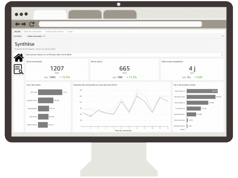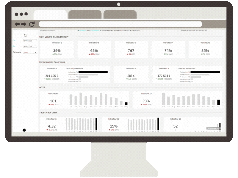 J’interviens sur vos rapports existants pour transformer des graphiques complexes en interfaces intuitives. En appliquant les principes de l’UX Design et du Data storytelling, je simplifie la lecture de vos indicateurs pour en faire de véritables outils de pilotage stratégique et d’aide à la décision.