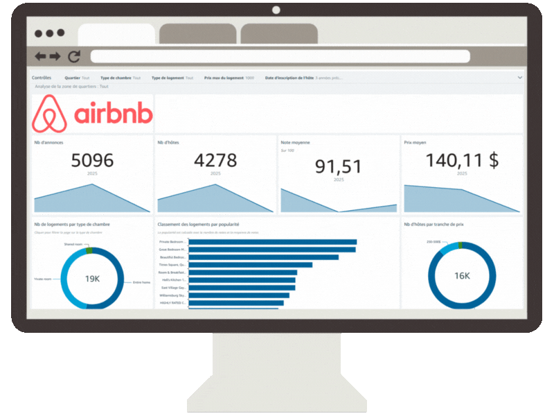 Depuis le receuil de besoins, l’analyse de vos données jusque l’élaboration d’un tableau de bord avec l’outil que votre entreprise utilise (Tableau, QuickSight ou Power BI), je vous livre un package complet, documentation comprise.